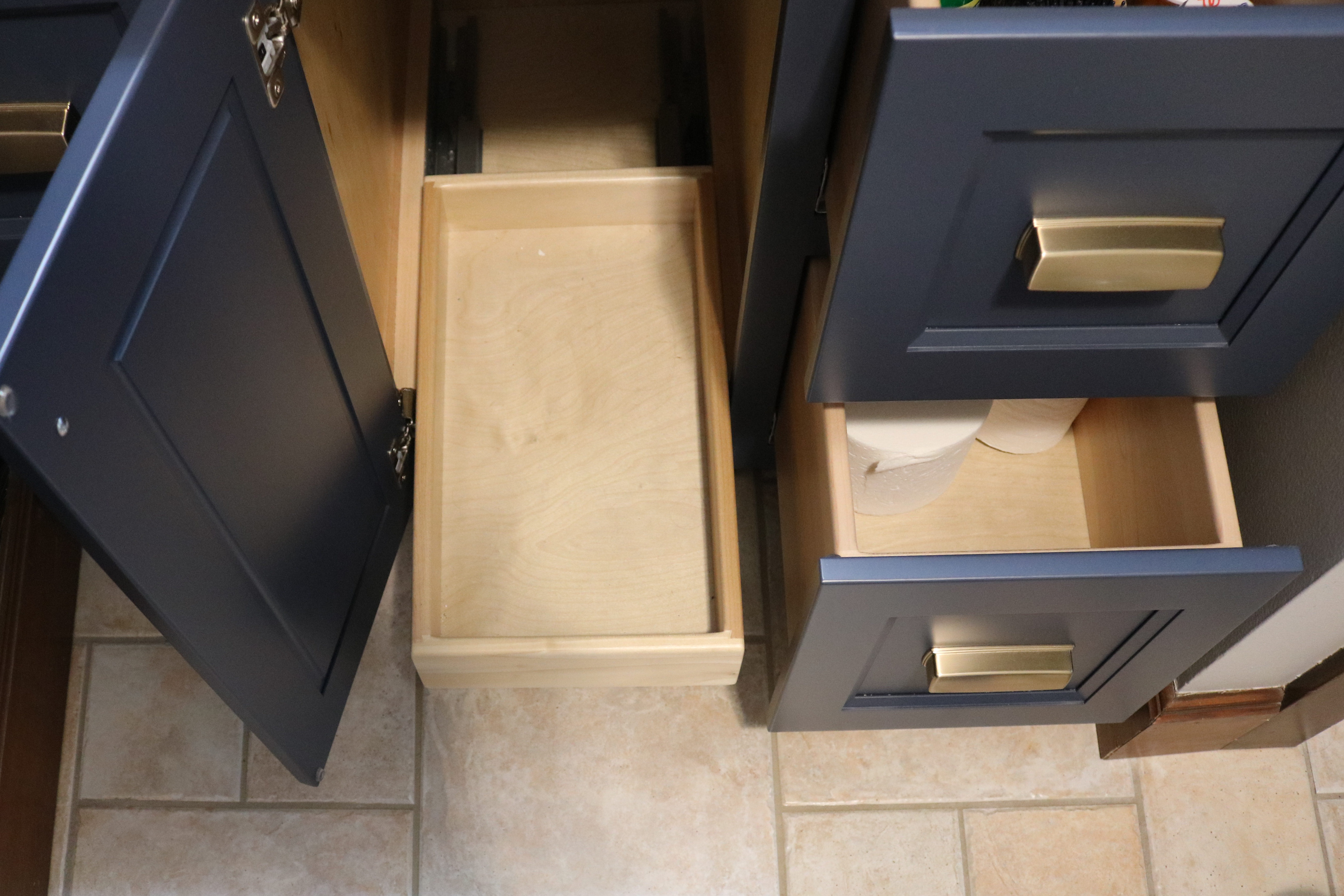 The farmhouse kitchen and bathroom both needed a fresh identity without losing their historic charm. The client loved the original layout and flow but needed cabinetry that offered better storage, improved organization, and elevated design.