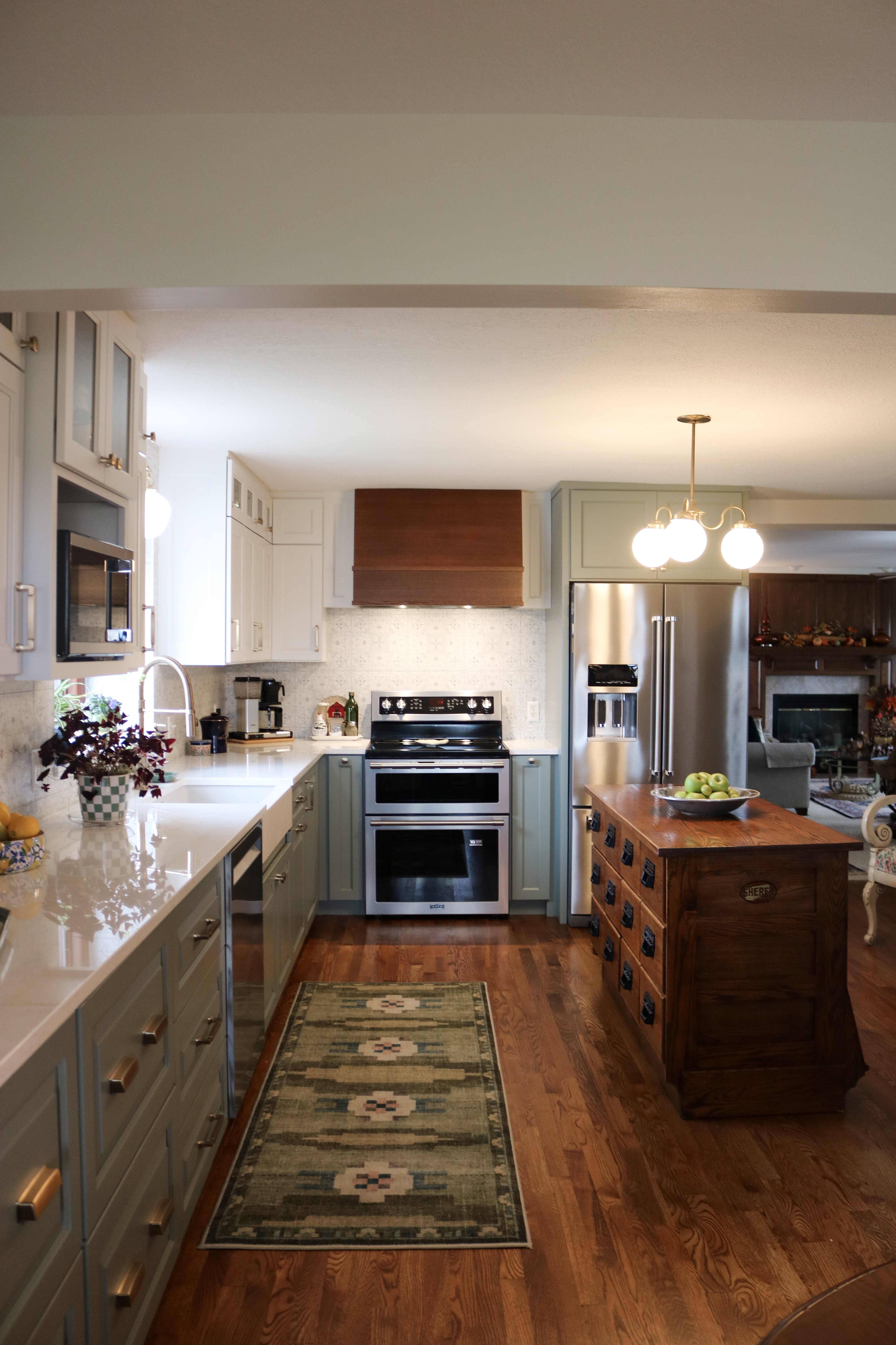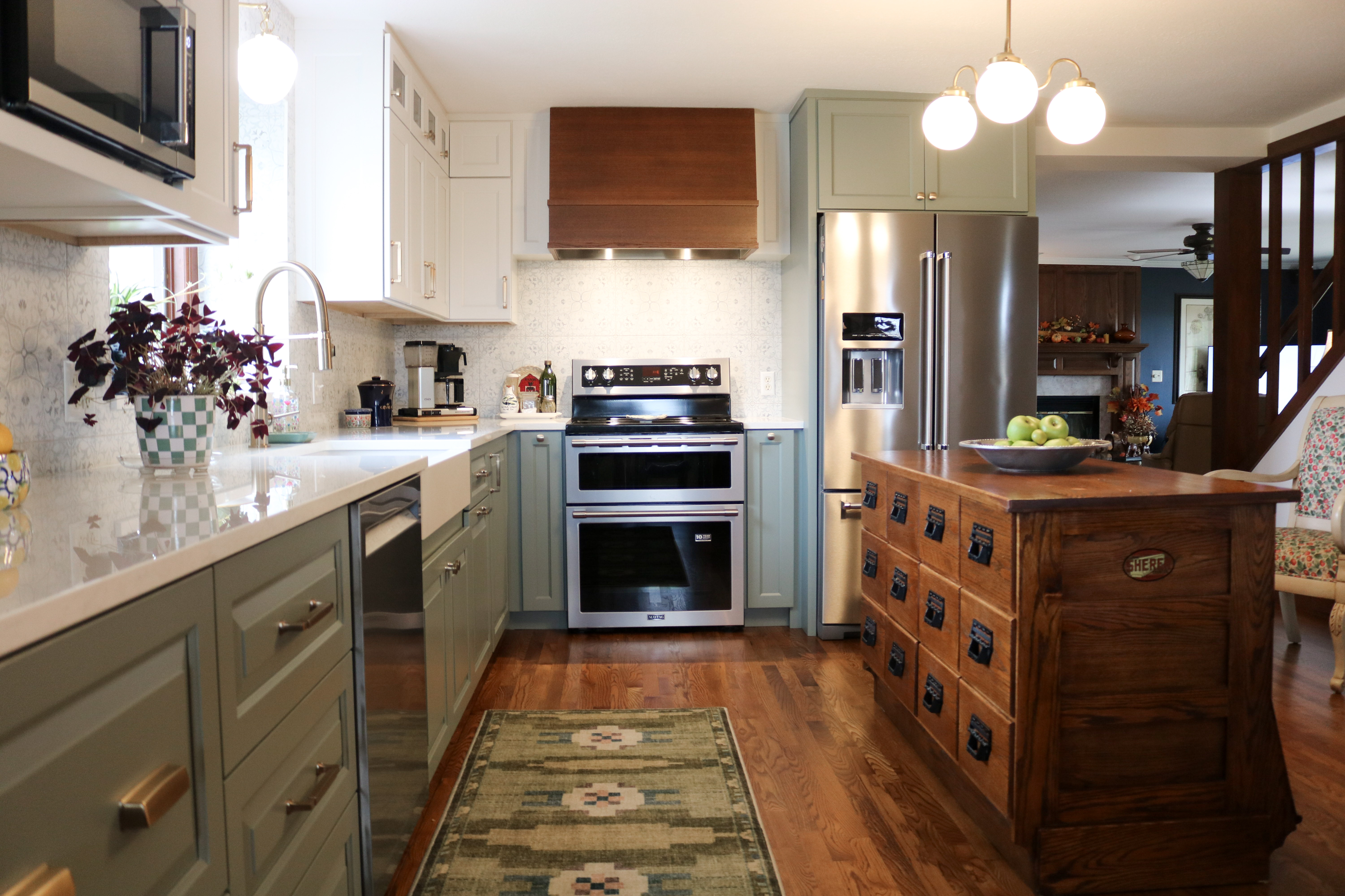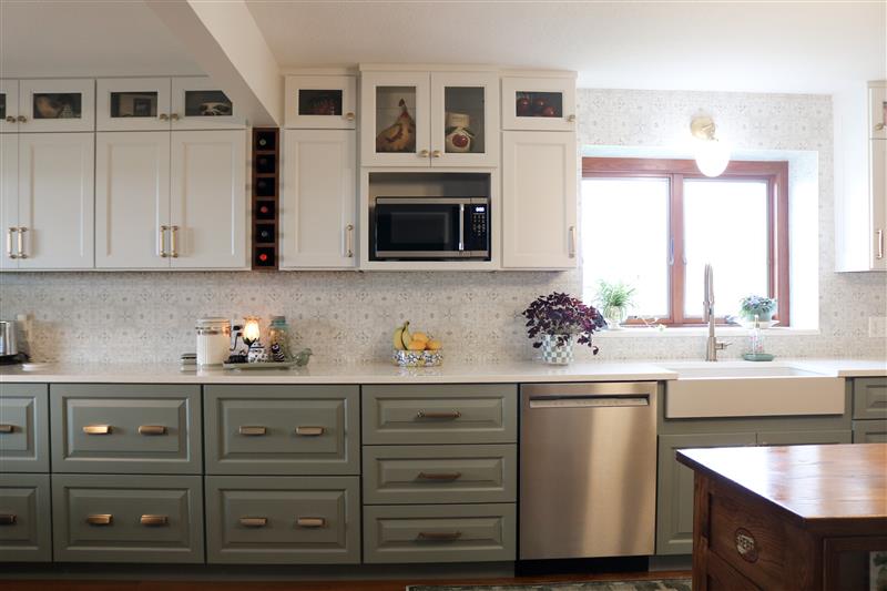Across the way from her husband’s family farm, this beloved farmhouse—once part of the original Hey Brother Dairy Farm—stands as a tribute to heritage and home. Patti was inspired by sage-green tones, warm neutrals, and natural finishes. She wanted to breathe new life into both the kitchen and bathroom while honoring the craftsmanship and charm that had always made the house special. Together, we brought her vision to life—balancing history and renewal through thoughtful design, handcrafted cabinetry, and timeless detail.