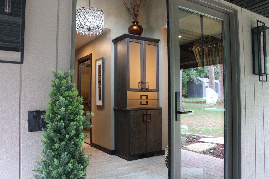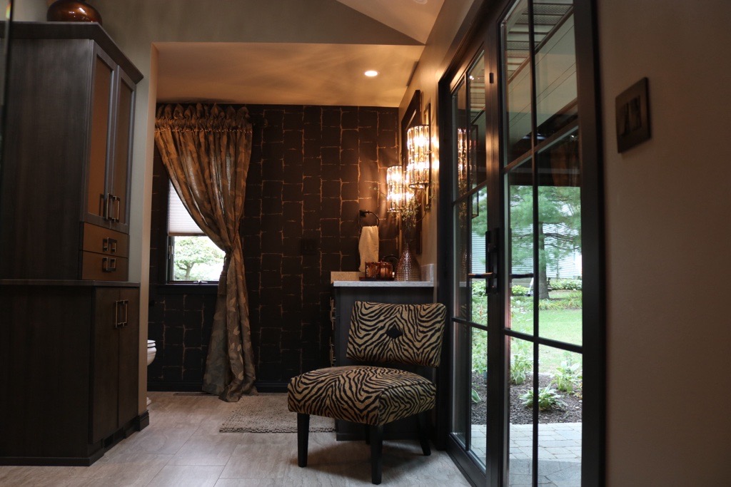 Sterling Woodworks completely reimagined the layout, introducing French-inspired doors and strategically placed windows to bring in natural light and create an indoor-outdoor connection. Fully custom cabinetry was designed to combine storage, innovation, and a one-of-a-kind aesthetic, resulting in a bathroom that is both practical and stunningly beautiful.